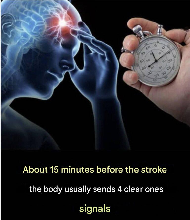 About 15 minutes before a stroke, the body usually sends 4 distinct signals