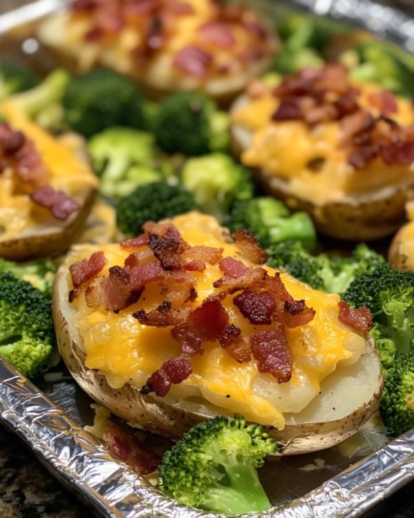 Cheesy baked potatoes with bacon pair wonderfully with a fresh green salad to balance the richness. A side of steamed or roasted vegetables such as broccoli or asparagus can complement the flavors and add a nutritious touch. For a more substantial spread, consider serving alongside grilled chicken or a hearty soup.