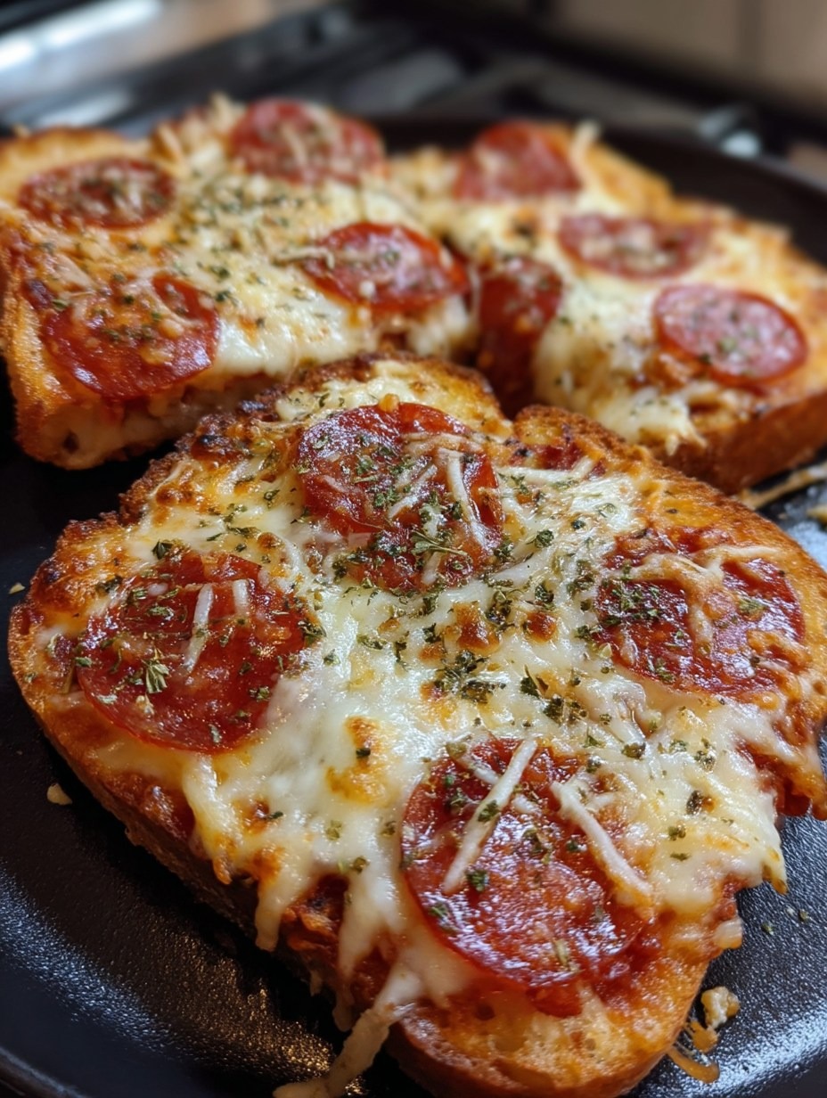 Thicker slices like sourdough or Texas toast crisp up beautifully and hold more toppings. But even regular sandwich bread works in a pinch.
