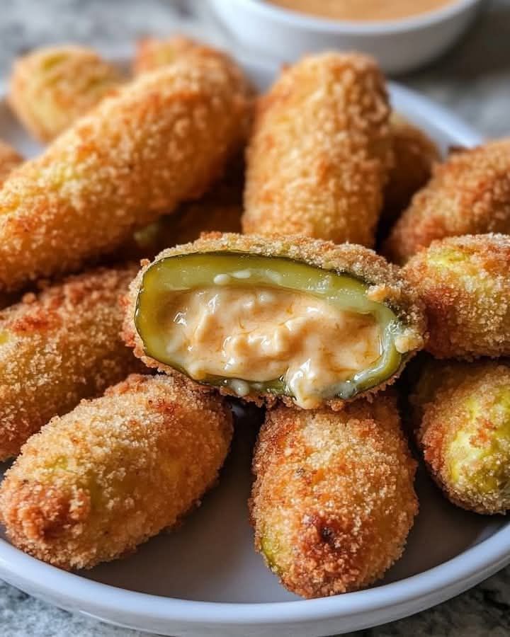 ✨ These crispy, cheesy stuffed pickles are filled with a creamy, savory cheese mixture, coated in a crunchy breading, and air-fried to golden perfection—an irresistible appetizer or snack! 😍