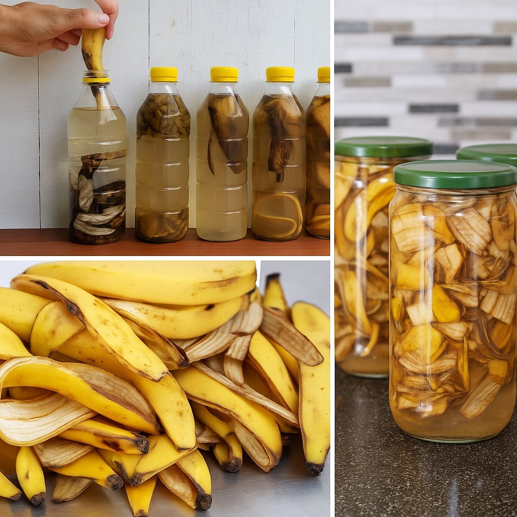 Banana peels: Store them in a bottle. Once you adopt this method, you’ll never toss them away again!