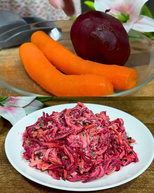 This Beetroot and Carrot Salad with Walnuts and Cheese is a vibrant, fresh, and flavorful dish that combines the earthiness of beets, the sweetness of carrots, and the richness of cheese and walnuts. Tossed together with a creamy, tangy dressing, this salad is a perfect side dish for any meal or a light, nutritious lunch. It’s quick to prepare, requires only a few ingredients, and provides a beautiful pop of color to your table. The combination of beets, carrots, and walnuts offers a satisfying crunch, while the dressing adds just the right amount of richness and zest.