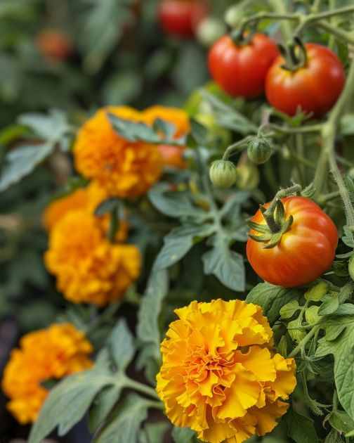 1. Marigolds are known to produce natural compounds that suppress root-knot nematodes, pests that can damage tomato roots.