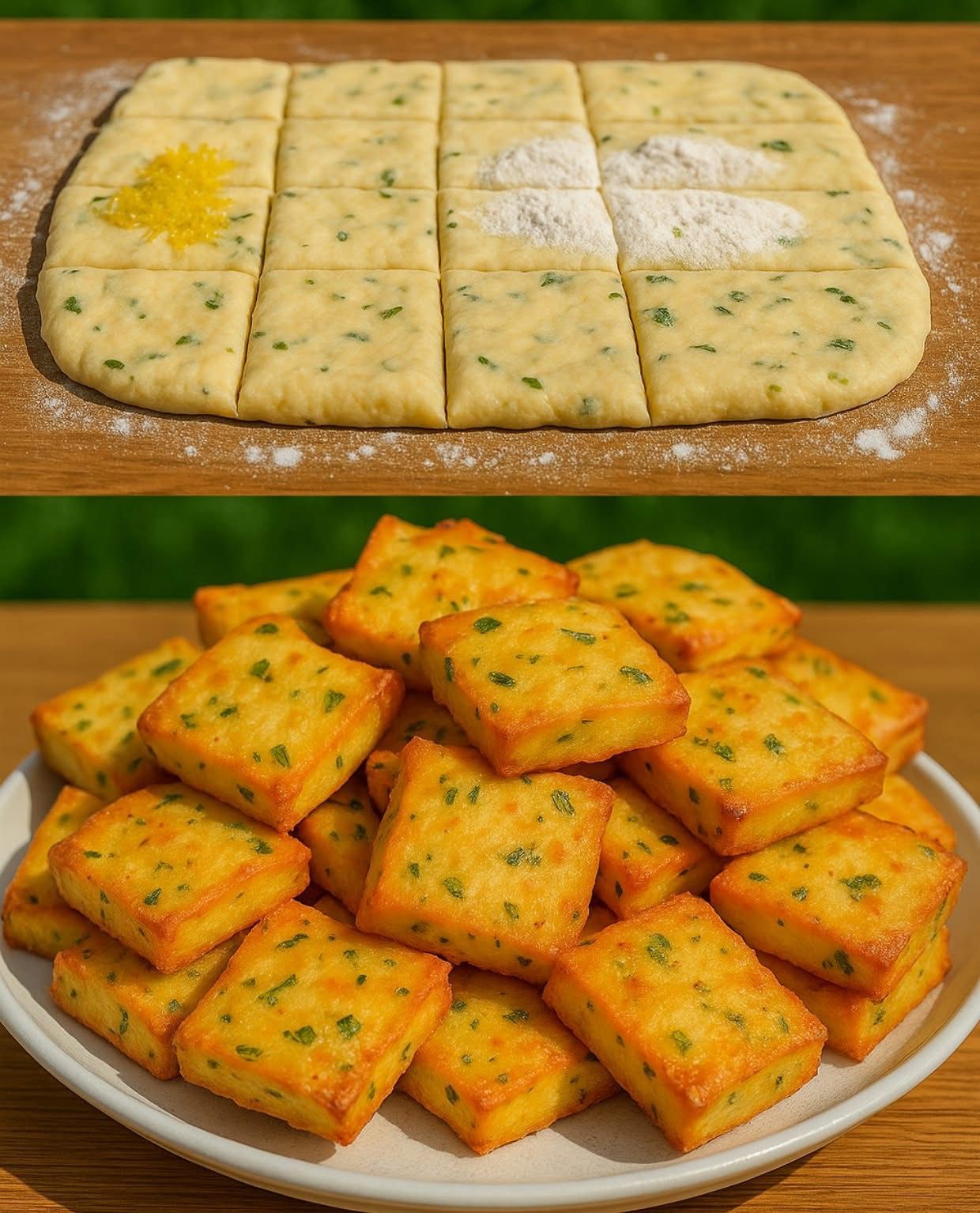 Bring a basket of fried potatoes and mix them with herbs.