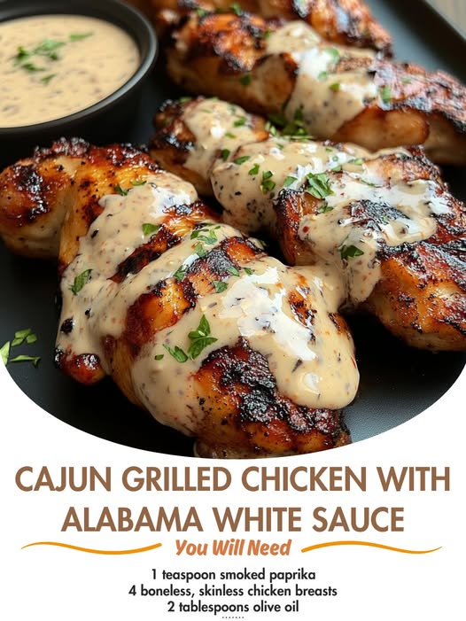 “Cajun Grilled Chicken with Alabama White Sauce 🍗🌶️