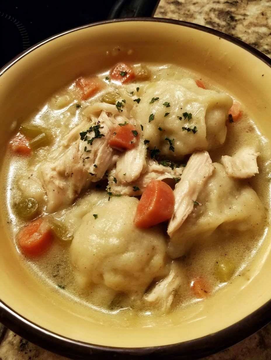 This chicken and dumplings recipe is really easy to make. To make this dish, you will need the following easy ingredients and guidelines:
