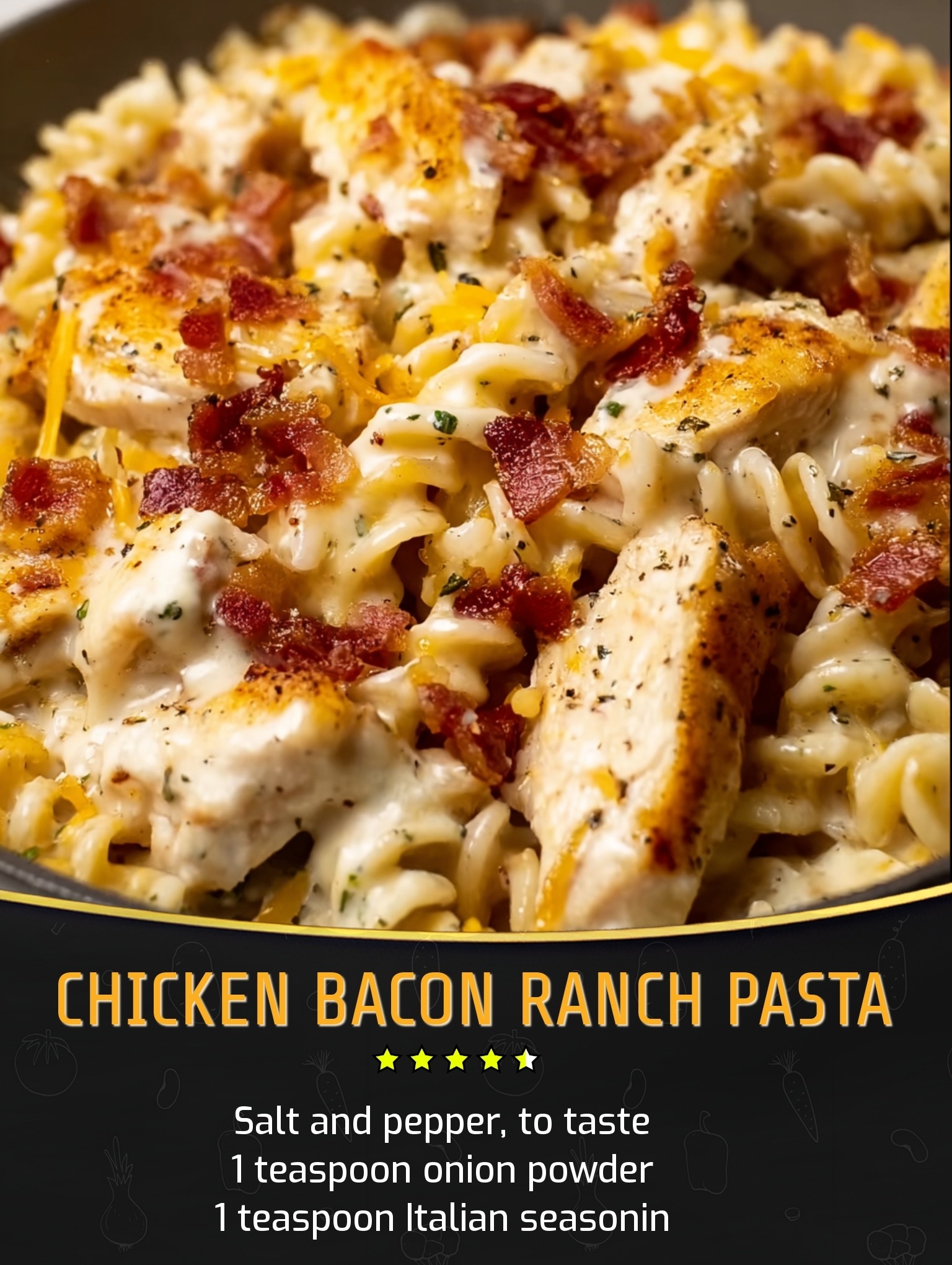 This chicken bacon ranch pasta blends tender chicken breast, crisp bacon, and rotini in a creamy cheddar sauce brightened with ranch flavoring. Italian seasoning and onion powder add savory depth, while garlic enriches the aroma. Quick-cooking techniques keep the chicken moist and the bacon crunchy, ensuring each bite is balanced. This dish captures comfort with every forkful, perfect for cozy evenings or family gatherings. Adjust pasta type or use whole milk as needed for personal twists, and serve fresh for the creamiest finish.
