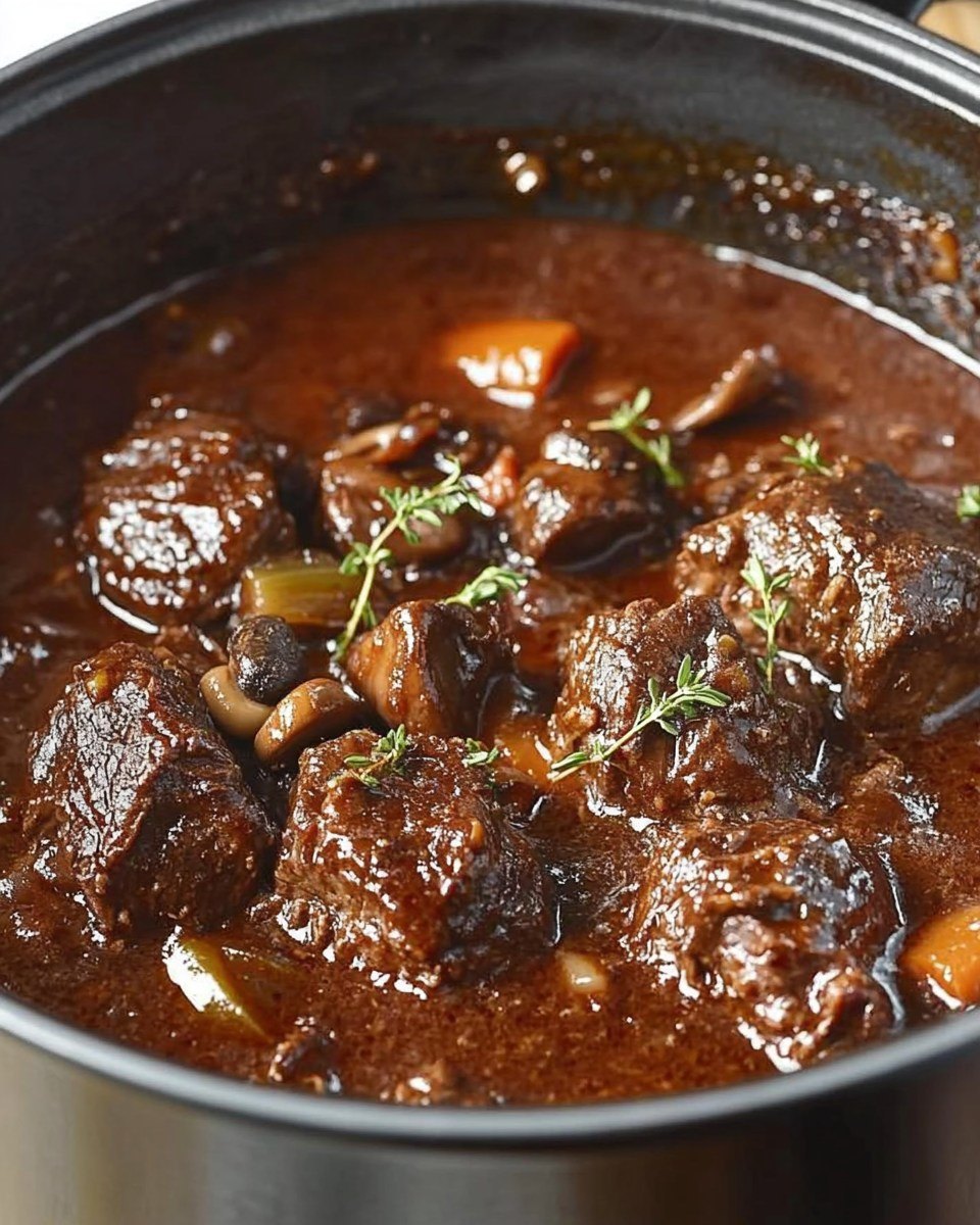 Classic French Beef Bourguignon Braised with Tender Mushrooms and Sweet Pearl Onions