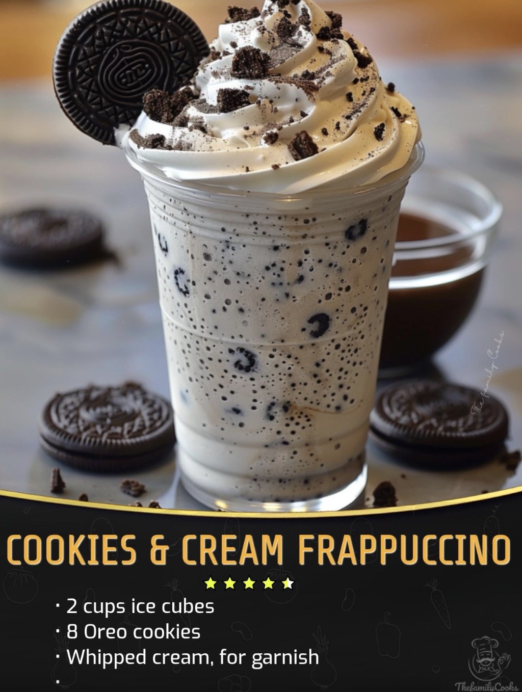 This Cookies & Cream Frappuccino is a cool and refreshing drink perfect for summer days or any time you crave a creamy treat. With a blend of milk, chocolate ice cream, and cookie crumbs, topped with whipped cream, it’s easy to prepare and customize for a richer or coffee-flavored twist.