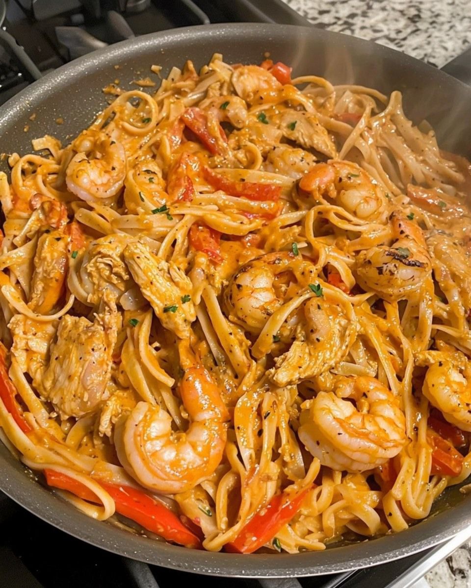 Creamy Cajun Shrimp and Chicken Pasta has become one of the most popular dishes for those seeking comfort, richness, and intense flavor. This recipe combines the tenderness of chicken, the delicacy of shrimp, and the power of Cajun spices in a rich, creamy sauce that perfectly coats the pasta.
