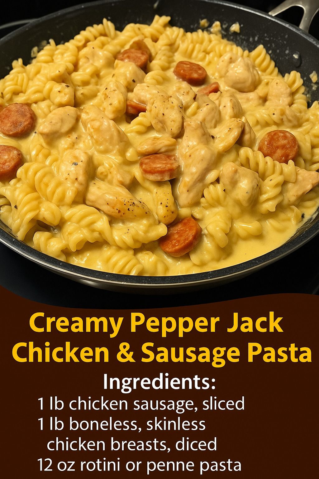 Creamy Pepper Jack Chicken and Sausage Pasta is a one-skillet dinner packed with flavor, spice, and creaminess…Looking for a cozy, flavor-packed dinner that comes together in under an hour? This Creamy Pepper Jack Chicken & Sausage Pasta delivers bold taste, creamy texture, and satisfying protein in every bite. With spicy chicken sausage, tender chicken breast, and a luscious pepper jack cheese sauce, it’s a comforting dish that’s perfect for weeknights or special gatherings.