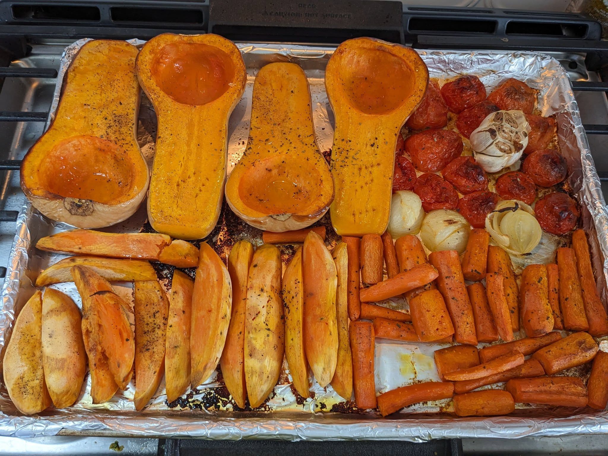 Creamy Roasted Butternut Squash, Sweet Potato & Carrot Soup