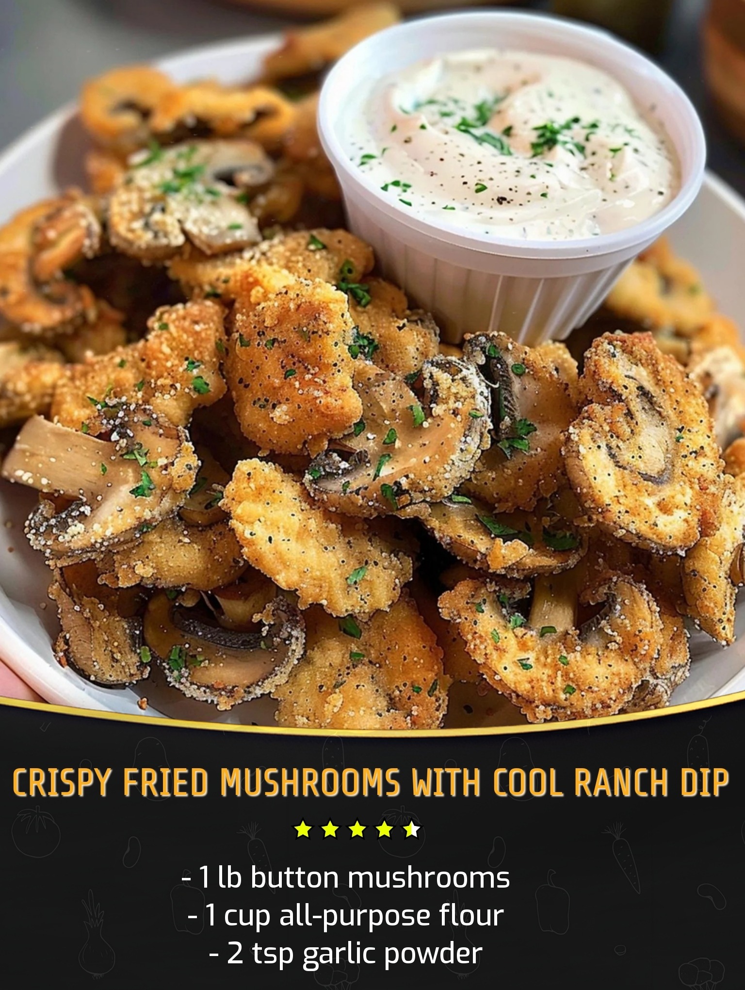 Crispy fried mushrooms are coated in a seasoned breadcrumb crust, delivering irresistible crunch with every bite. Served hot, these golden mushrooms pair perfectly with a refreshing homemade ranch dip made from mayonnaise, sour cream, fresh herbs, and a touch of garlic. This crowd-pleasing dish is ideal for gatherings, game days, or as a flavorful appetizer before your main course. Enjoy an easy, delicious snack that blends savory, crispy, and tangy flavors.