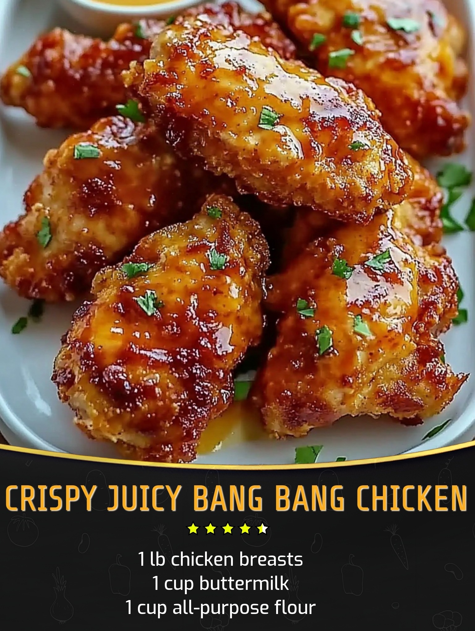 This bang bang-style chicken delivers maximum flavor with juicy, tender bites wrapped in an ultra-crispy coating. After marinating in buttermilk for tenderness, each bite is fried until golden and tossed in a creamy sauce, blending sweet chili, sriracha, honey, and mayo. The result is an irresistible pairing of crunch and creamy heat, perfect for casual dinners or crowd-friendly appetizers.