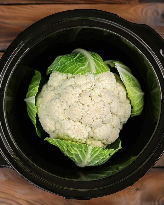 This slow cooker whole cauliflower can be served as a delightful vegetarian centerpiece or as a hearty side. It pairs impeccably with a crisp green salad or some sautéed greens, like kale or spinach. For a heartier meal, consider serving it alongside quinoa or couscous, which nicely soaks up the rich flavors of the cooking juices. A drizzle of tahini sauce or a sprinkle of your favorite herbs can further elevate this dish.