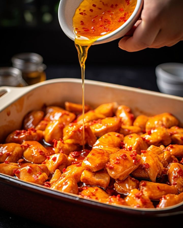 Baked Sweet Chili Chicken Bites are a delectable fusion of savory and sweet with a hint of spice. Originating from the creative blending of Asian-inspired flavors with the Western love for bite-sized snacks, this dish is perfect for those who favor the allure of chicken glazed in a sweet chili sauce that offers just the right kick of heat. These bites are versatile and have quickly become a favorite at parties, family gatherings, or even as a tasty snack during movie nights. Not only are they bursting with flavor, but baking them also provides a healthier alternative to the traditional fried appetizers.