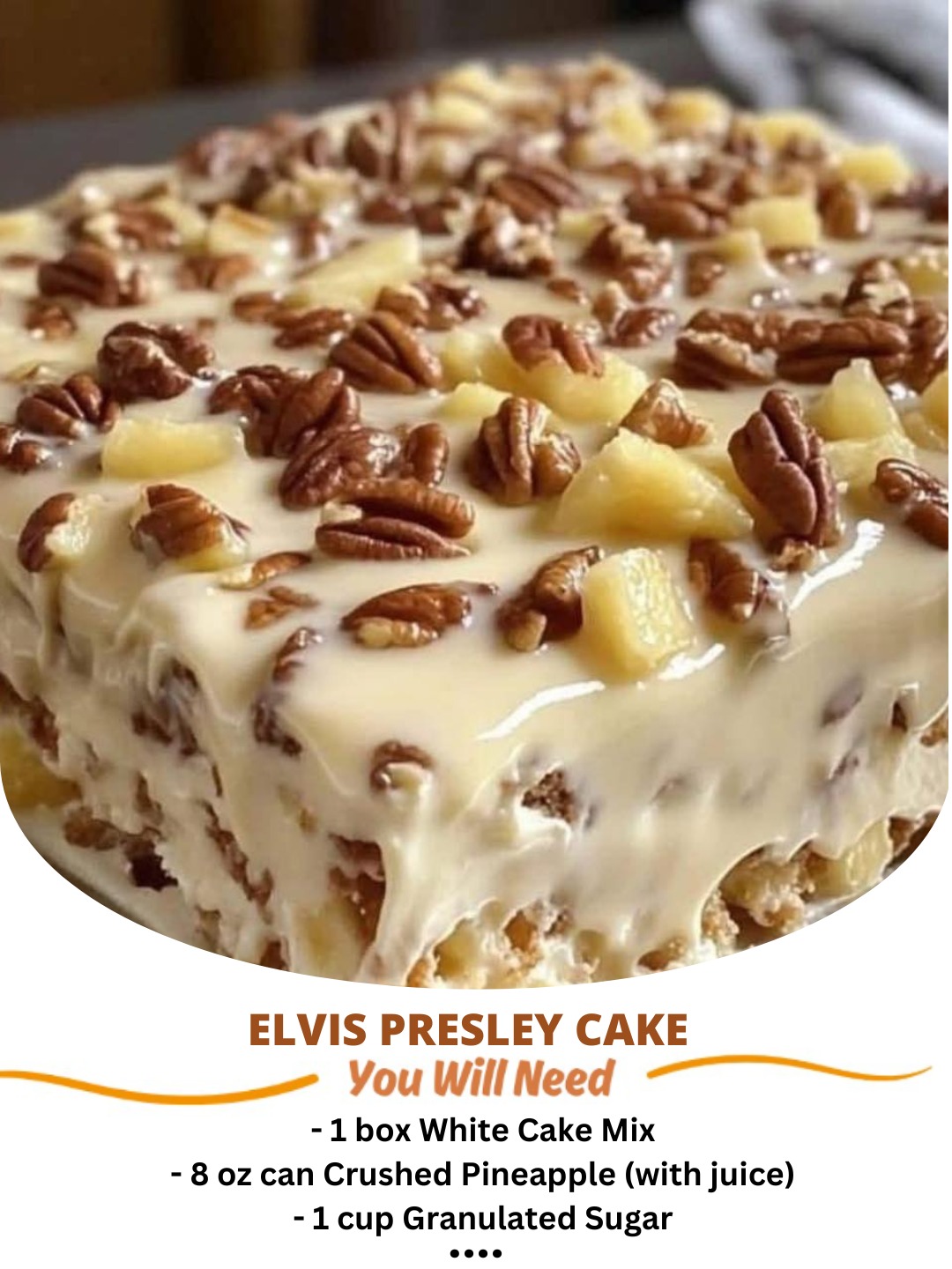 This Elvis Presley Cake , also known as the Jailhouse Rock Cake , is a show-stopping dessert inspired by the legendary Elvis Presley’s love for rich, indulgent flavors. Packed with bananas, peanut butter, and chocolate, this cake is a tribute to his iconic sandwich preferences, but elevated into a luxurious treat fit for royalty—or the King himself. Whether you’re hosting a themed party, celebrating Elvis’s birthday, or simply craving something over-the-top delicious, this cake is sure to rock your taste buds. Let’s bake this sweet masterpiece!