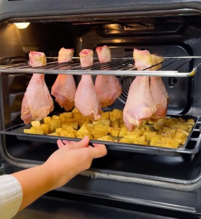Hanging Chicken Drumsticks with Roasted Potatoes