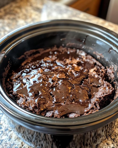 Slow Cooker 4-Ingredient Hot Fudge Brownies