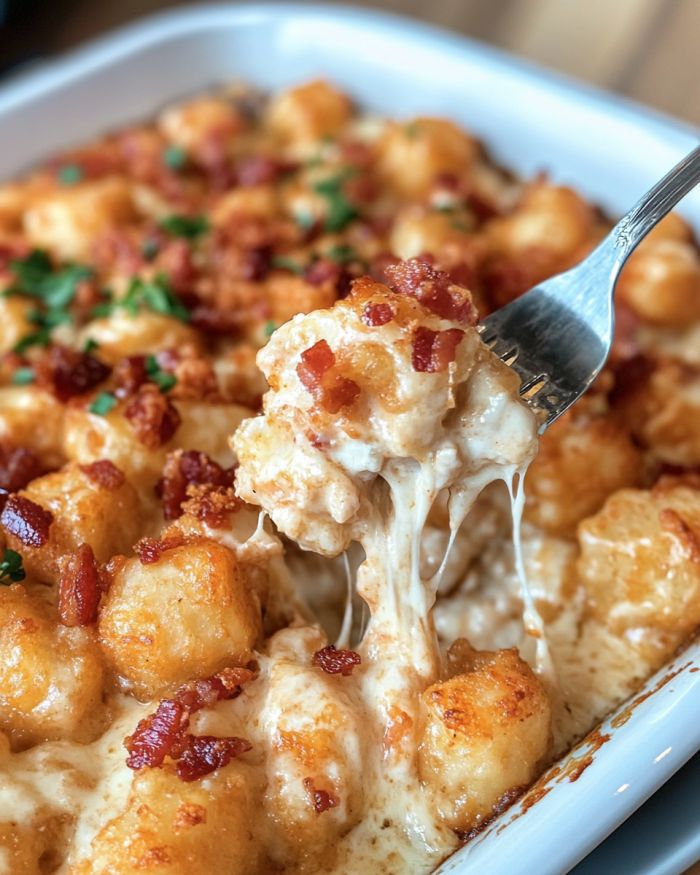 Chicken Bacon Ranch Tater Tot Casserole is a delightful fusion of flavors and textures, embodying the comfort food ethos of the Midwest. This dish combines the creamy richness of ranch dressing, the savory goodness of bacon, and the crispy texture of tater tots, all held together with a generous layer of cheese. It’s a perfect example of how simple ingredients can come together to create something truly satisfying. This casserole is ideal for family gatherings or potlucks, where its hearty nature and crowd-pleasing taste are sure to make it a favorite.