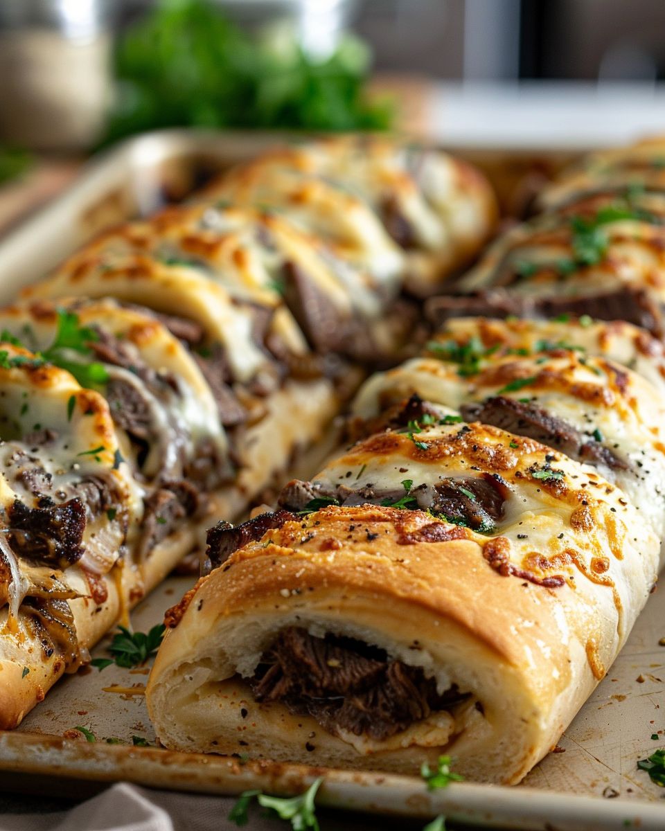This Philly Cheesesteak Stromboli is a meal in itself, but it goes beautifully with a side of marinara sauce for dipping. You can also serve it with a light arugula salad dressed in olive oil and lemon juice to add a fresh, peppery contrast to the savory stromboli. For a full meal, consider pairing it with some crispy sweet potato fries or a simple coleslaw.