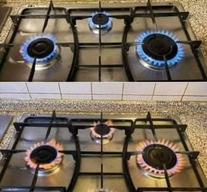 Blue Flame: Indicates complete combustion. Gas and oxygen mix properly, burning cleanly and efficiently. This saves fuel and heats cookware evenly.