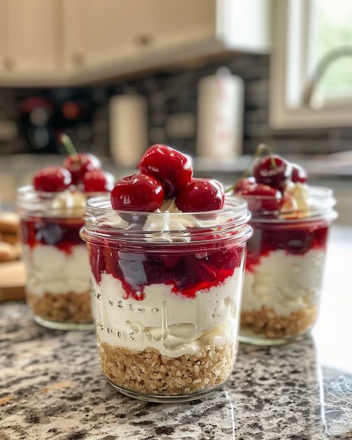 Cherry cream cheese dessert in a jar is a delightful blend of sweet, tangy flavors and creamy textures, perfect for any occasion. Originating as a simplified and modern take on the classic cherry cheesecake, this no-bake treat is ideal for those looking to impress without spending hours in the kitchen. It’s a versatile dessert that can be enjoyed at family gatherings, potlucks, or simply as a decadent treat to satisfy your sweet tooth. The convenience of serving it in jars makes it a great option for picnics or outdoor events too.