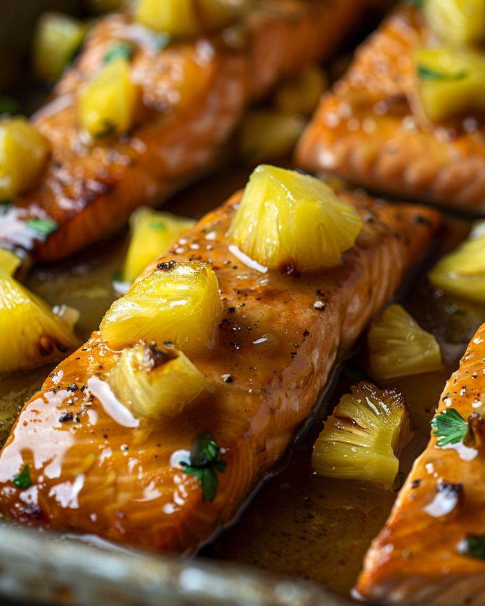 Picture a serene Midwestern summer evening, cicadas humming gently in the dusk and a warm breeze carries the sweet scent of cornfields. It’s on nights like these that I cherish the simple, comforting foods that tie us to this land and to each other. Baked Pineapple Salmon is somewhat of a unique blend, mingling the steadfast traditions of Midwestern cooking with a hint of the exotic. Now salmon might not be native to our corn-laden plains, but this dish celebrates the beautiful way our table has expanded to include flavours from the coasts. On a wood-aged farm table, under the soft glow of hanging porch lights, this recipe offers a way to share a tale of unity – surf meeting turf right here in our home kitchens. This dish is for those evenings when you long for something that delights the palate and feeds the soul with a touch of sweetness and warmth.