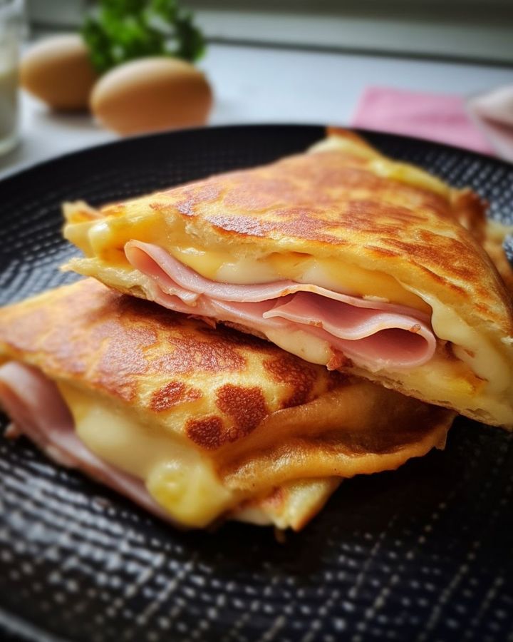 Swap out the ham for crispy cooked bacon and switch the mozzarella with sharp cheddar cheese. The smoky goodness of bacon combined with the rich taste of cheddar will create a comforting and indulgent breakfast treat.