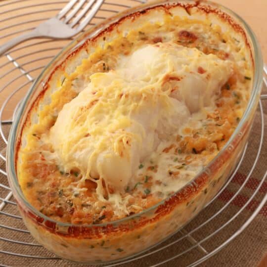 The idea of adding mayonnaise and parmesan cheese to the chicken breast is pure genius! The dough turns beautifully golden after baking and it smells great.