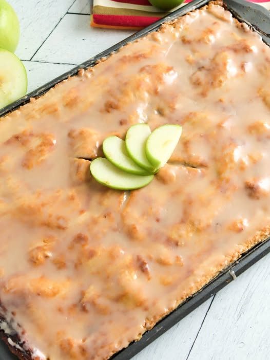 This cozy Mom’s Flat Apple Pie is a simple, sheet-pan style take on the classic double-crust apple pie. It features tart Granny Smith apples layered atop a crunchy bed of Corn Flakes and finished with a delicate, sweet glaze.