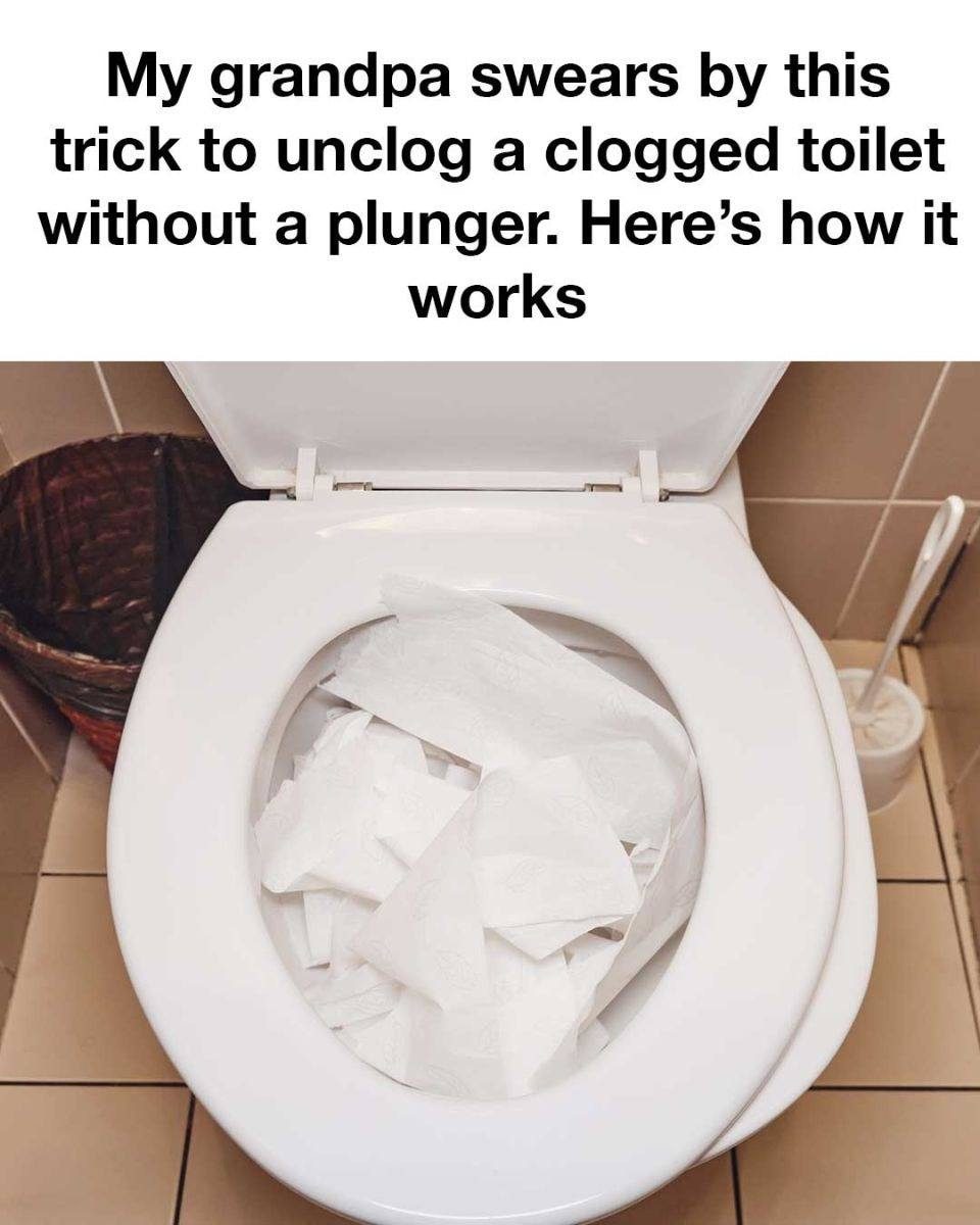 Unclogging a toilet is one of those daunting household tasks that no one looks forward to. Typically, we rely on plungers to resolve the issue. However, what if you don’t have a plunger on hand? My grandpa, a man of many handy tricks, swears by a unique method to unclog a toilet without using one. This article will guide you through his intriguing and effective solution.
