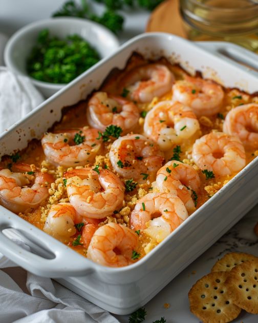 This delightful casserole pairs wonderfully with a light, fresh garden salad dressed with a simple vinaigrette to cut through the richness. On the side, consider serving some crusty bread or garlic toast to help scoop up all the lovely juices. For a more rounded out meal, a side of steamed asparagus or green beans would complement the flavors of the shrimp beautifully.