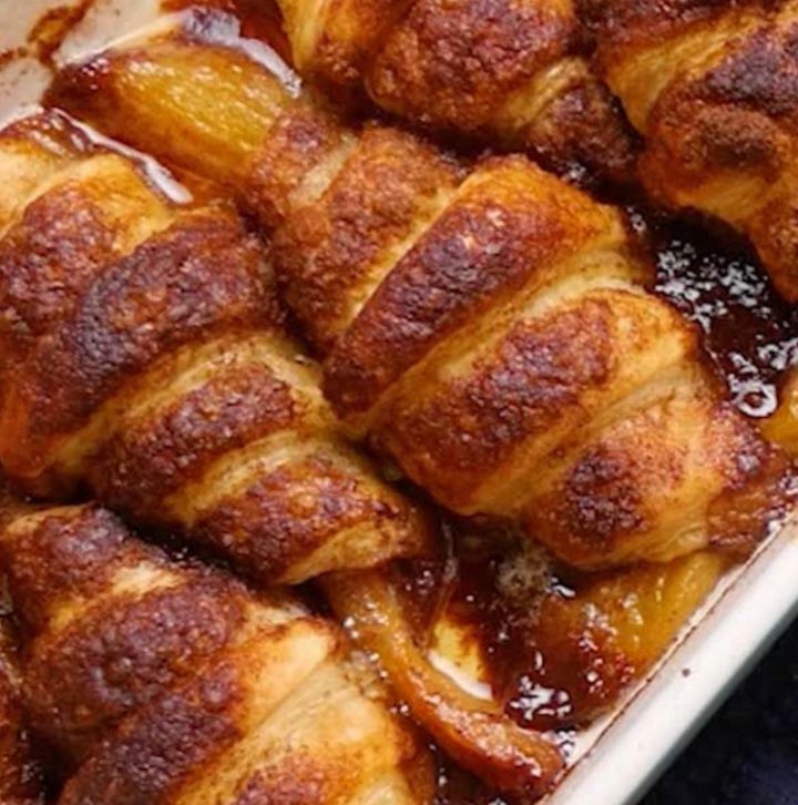 If you’re in need of a quick and easy dessert, look no further than these baked peach dumplings. Using refrigerated crescent rolls as the base, these dumplings come together in no time at all. The dough is wrapped around canned peach sections and drizzled with peach syrup, butter, and cinnamon sugar before being baked to tender perfection.
