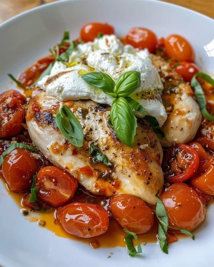 Chicken with Braised Tomatoes and Burrata