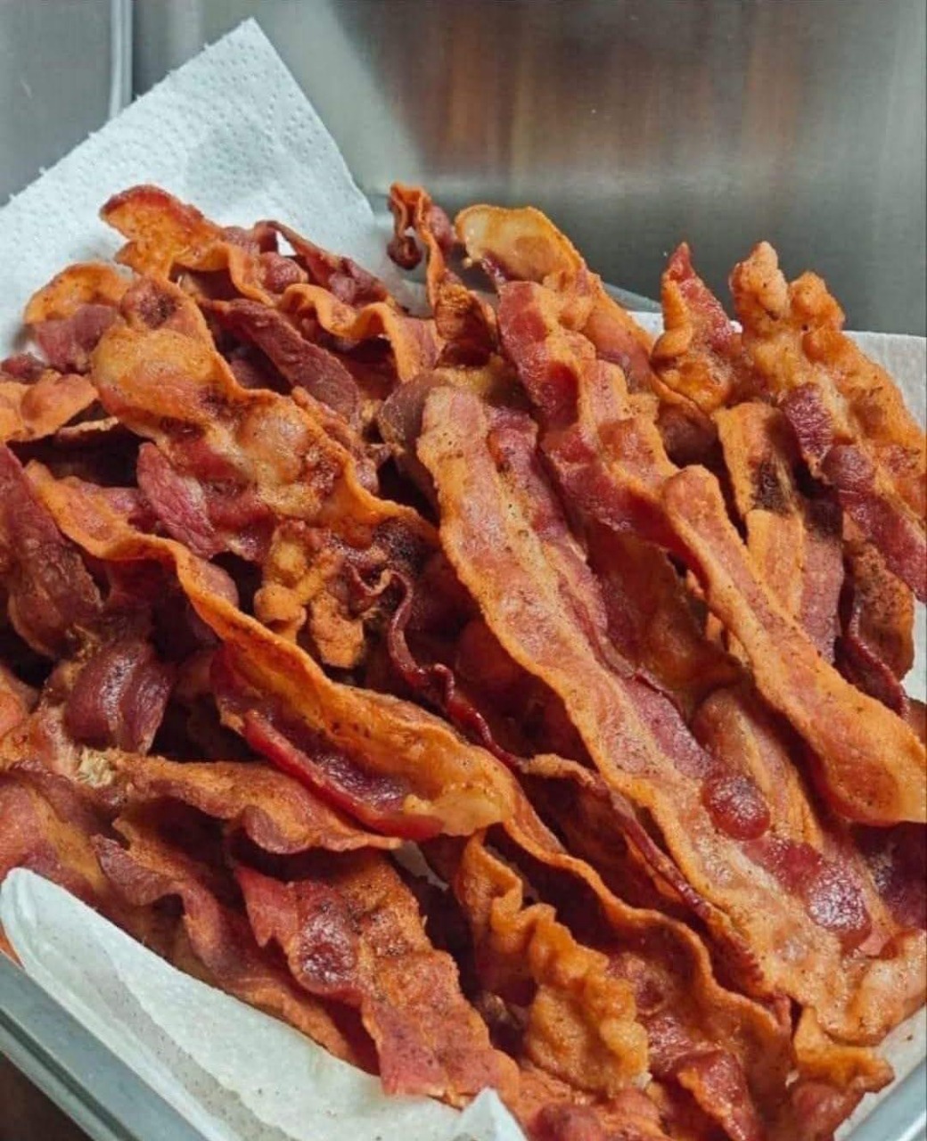 2. Cool Slightly & Serve: Let the bacon crisp up for 2–3 minutes before serving.