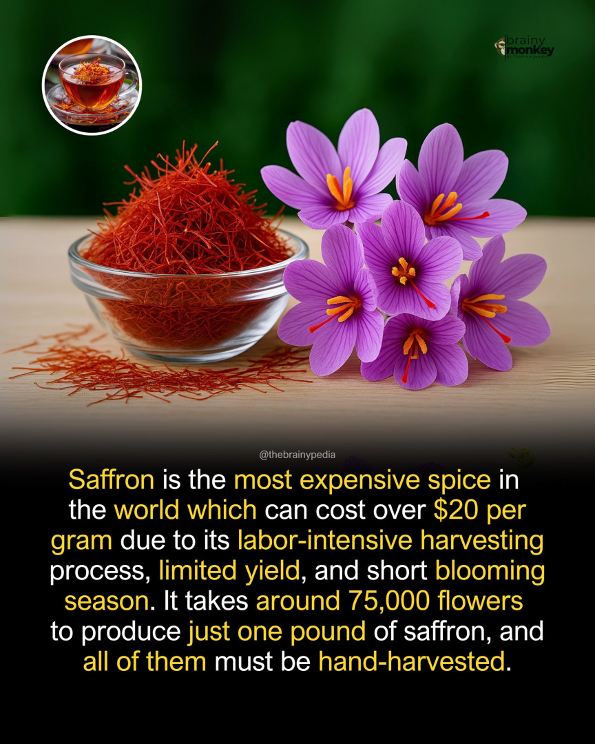 Saffron is the most expensive spice in the world, and for good reason. According to Encyclopaedia Britannica, the high cost of saffron comes down to its labor-intensive harvesting process, limited yield, and short blooming season. Saffron is derived from the stigma of the Crocus sativus flower, a delicate purple bloom that produces only three tiny red stigmas per flower. These stigmas are the part used as the spice. To produce just one pound of saffron, it takes around 75,000 flowers, and all of them must be hand-harvested. The flowers bloom for only two to three weeks each year, and the stigmas must be picked quickly, often before sunrise, before they wilt or degrade in quality.