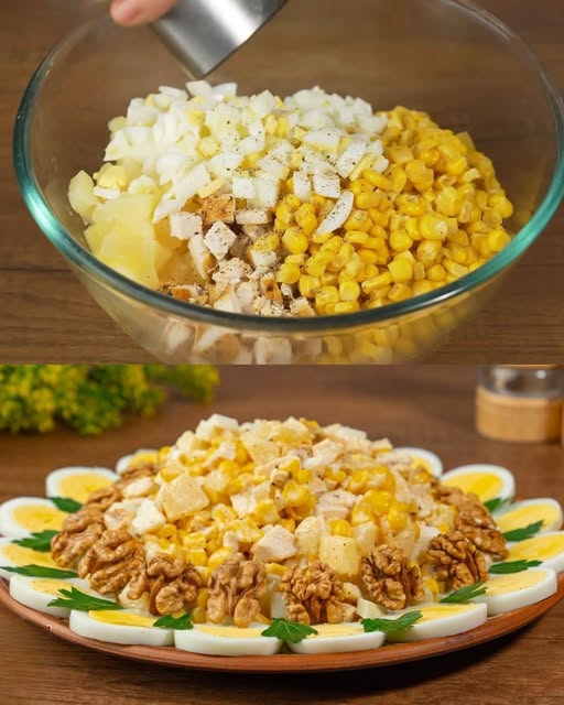 Salads are a universal favorite in kitchens around the world, offering a versatile and refreshing option for any meal or occasion. The Salad “Tropical Island” stands out as a delightful and exotic dish that brings together the richness of chicken, the sweetness of canned pineapples, the crunch of walnuts, and the creaminess of mayonnaise. This salad is not only easy to prepare but also offers an incredible burst of flavors and textures, making it perfect for festive gatherings, casual dinners, or as a standalone meal.
