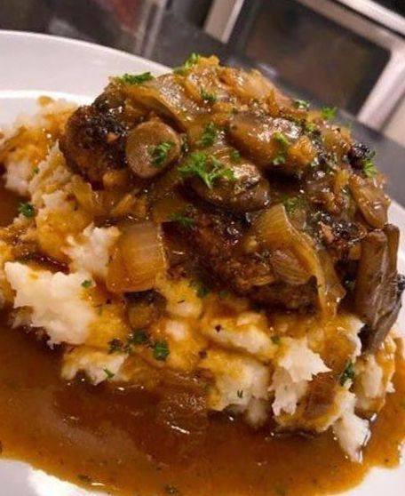 Salisbury Steak with Mashed Potatoes and Mushroom Gravy