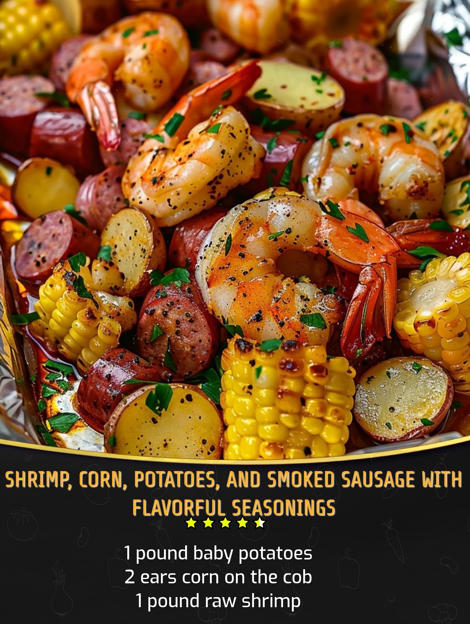 Succulent shrimp, sweet corn, tender potatoes, and smoky sausage are tossed in buttery Old Bay seasoning, then wrapped in foil for a simple grilling method. These individual packets steam the ingredients to perfection and are ideal for quick summer meals. Clean-up is a breeze, making this a great option for gatherings, picnics, or family dinners. Garnish with lemon and parsley for a fresh finish and enjoy straight from the foil—no plates needed!