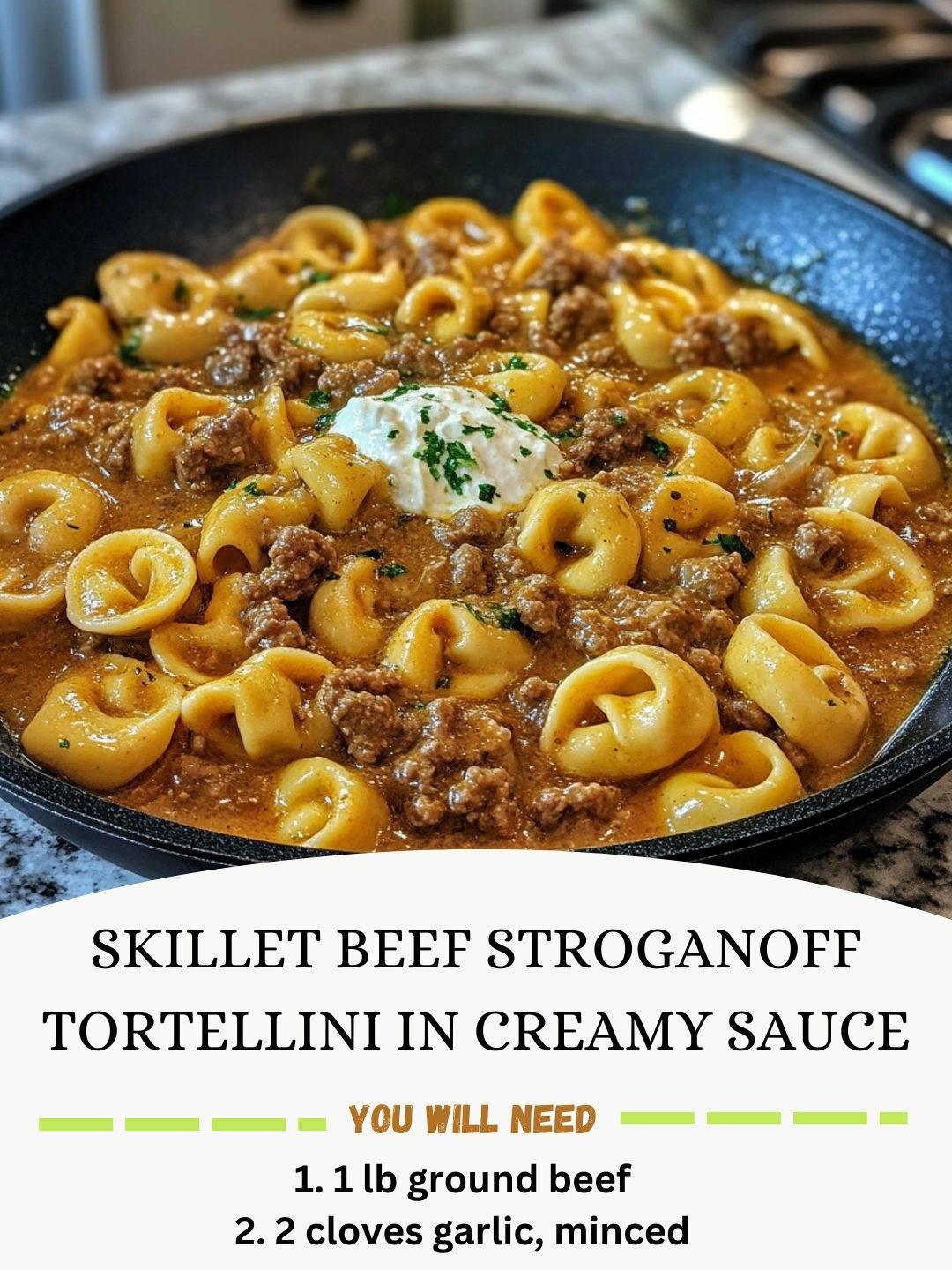 Skillet Beef Stroganoff Tortellini in Creamy Sauce
