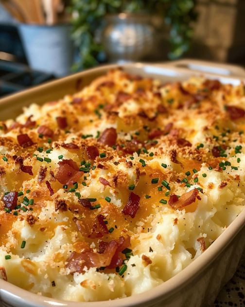Twice Baked Potatoes Casserole is a comforting, hearty dish that brings together all the flavors we love about traditional twice baked potatoes, but with the simplicity of a one-pan meal. This dish is perfect for family dinners or when you have company over because it pairs well with almost anything and is guaranteed to be a crowd pleaser. Plus, it’s a great way to use up those potatoes you have sitting in your pantry.