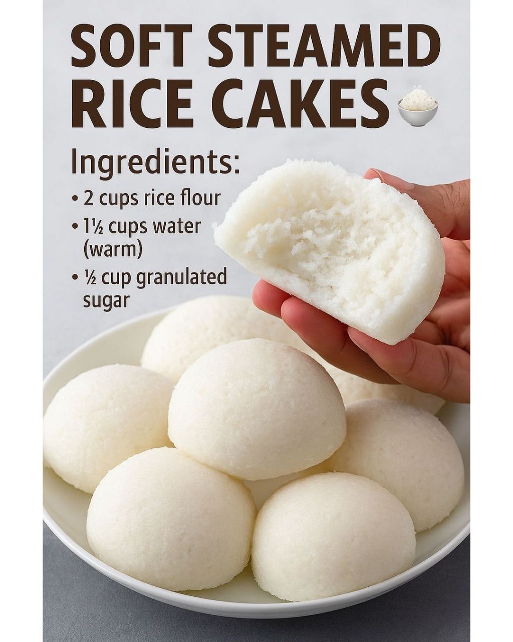 To make soft steamed rice cakes, you will need the following ingredients: