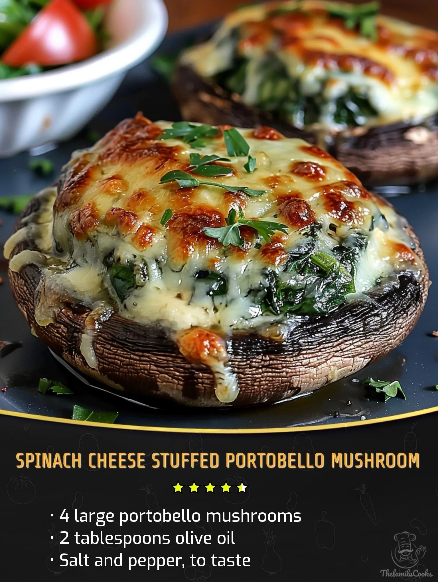Portobello mushroom caps are generously filled with a savory blend of sautéed spinach, ricotta, mozzarella, and Parmesan, then baked until the mushrooms are tender and the cheese is bubbly and golden. Seasoned with Italian herbs and garlic, these stuffed mushrooms deliver robust flavor and a creamy texture. Perfect as a vegetarian entrée or hearty side, a sprinkle of fresh basil before serving adds a bright, aromatic finish.
