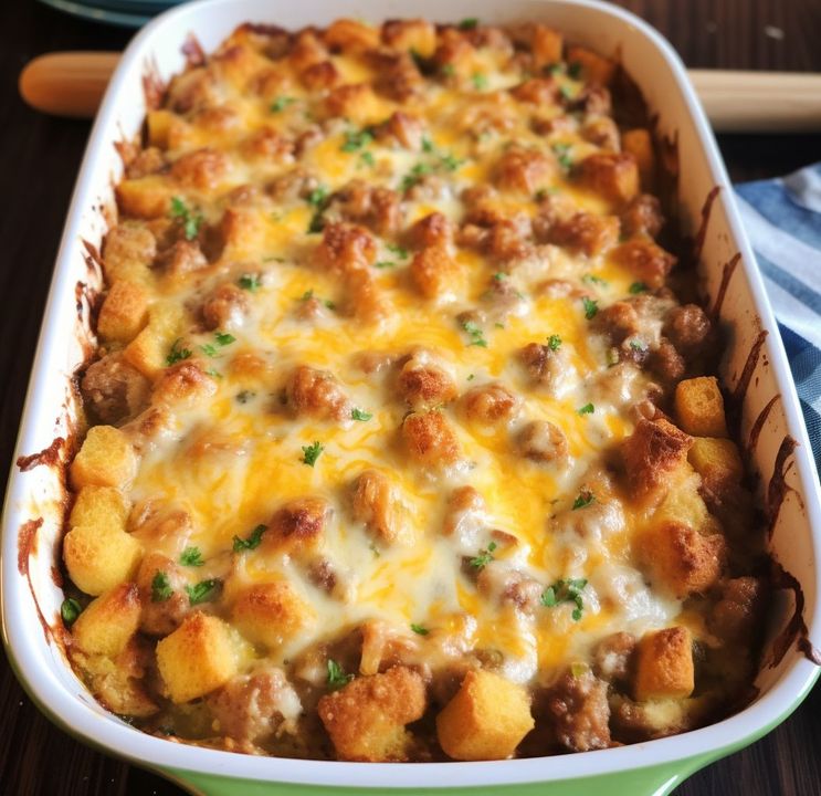 Although this Tater Tot Breakfast Casserole skips the usual onion and bell pepper components, it doesn’t compromise on taste. The star of the dish is the breakfast sausage. The combination of savory sausage and golden tater tots, all baked together with a generous amount of melted cheddar cheese, creates a satisfying and comforting meal that will surely leave you satisfied.