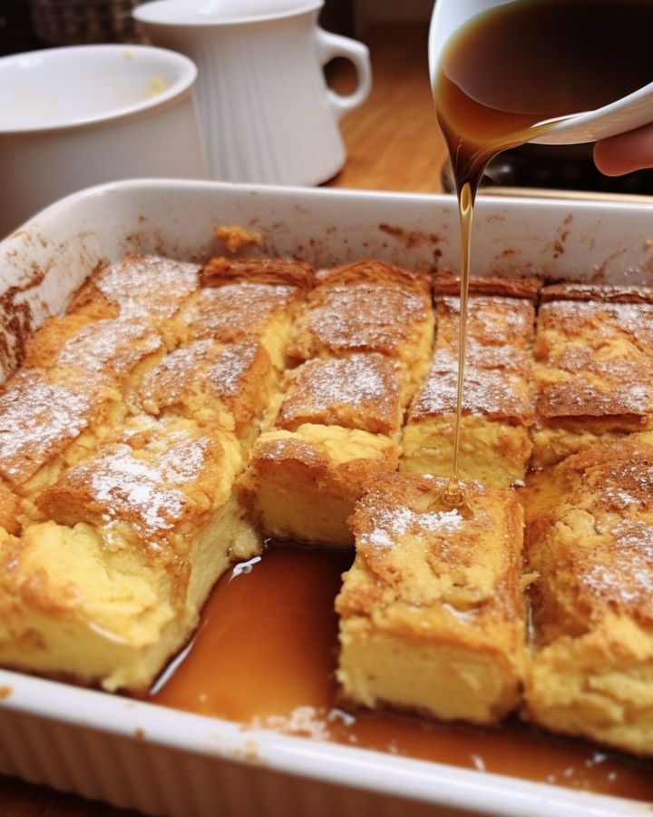 This decadent French Toast Bake can be served in a variety of ways, making it versatile and customizable to suit different tastes. A classic option is to top it with a drizzle of maple syrup or dust it with powdered sugar for a sweet and simple presentation. For those who enjoy a little crunch, adding a sprinkle of chopped nuts, such as pecans or almonds, can elevate the dish to new heights. To add a fresh and fruity element, serve it with a side of fresh berries or a fruit salad. And for an indulgent treat, a dollop of whipped cream or a scoop of vanilla ice cream goes exceptionally well with this French Toast Bake.