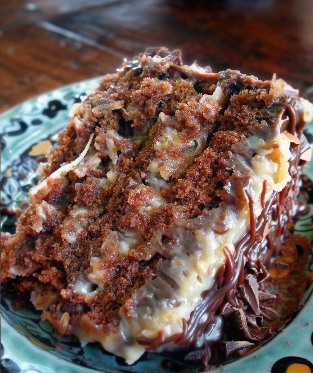 This decadent cake features a creamy cheesecake layer nestled between soft white cake and topped with a rich coconut-pecan frosting, creating a showstopping dessert perfect for any occasion.